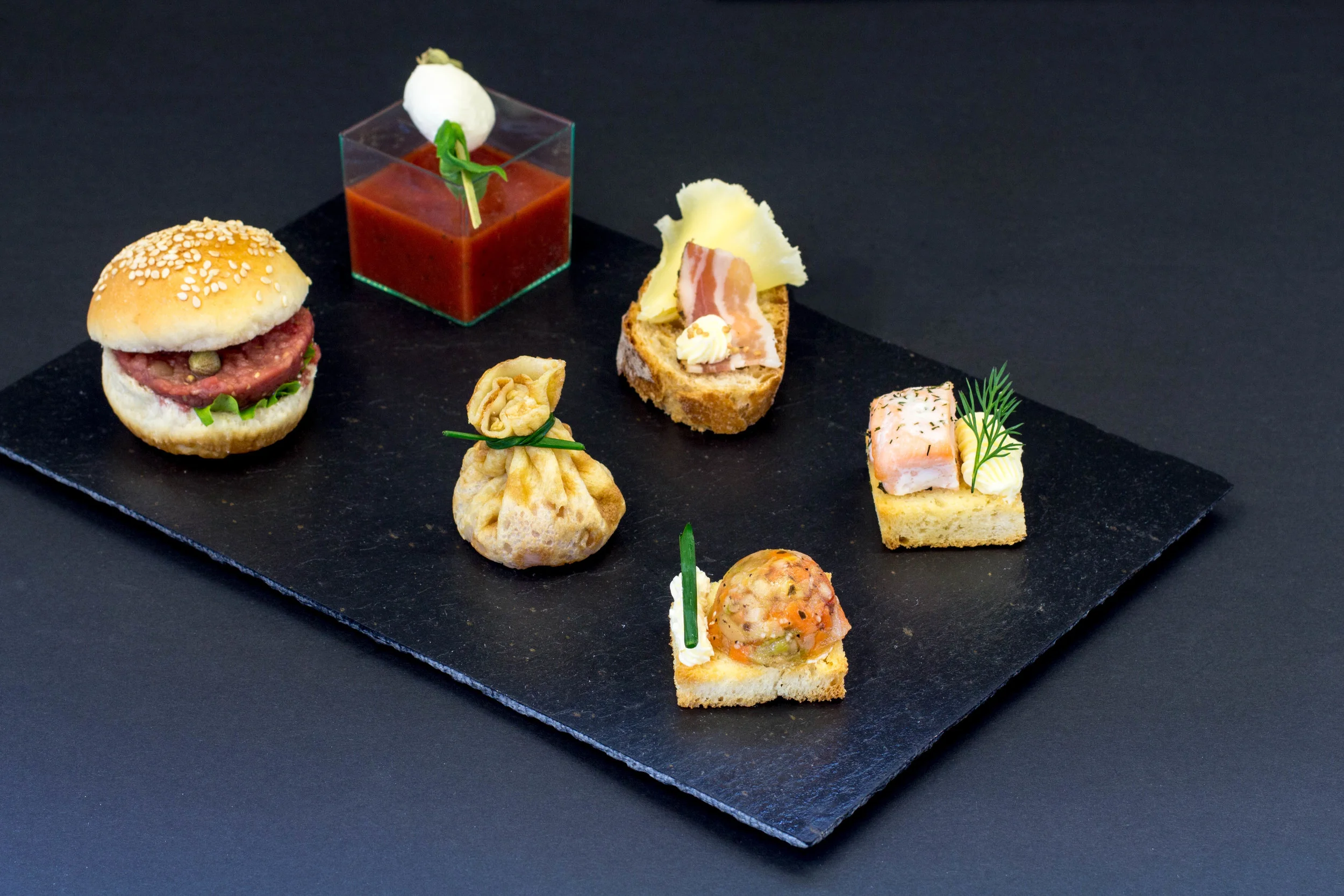 - Buffets apéritifs : plateaux de canapés, mignardises et mini desserts