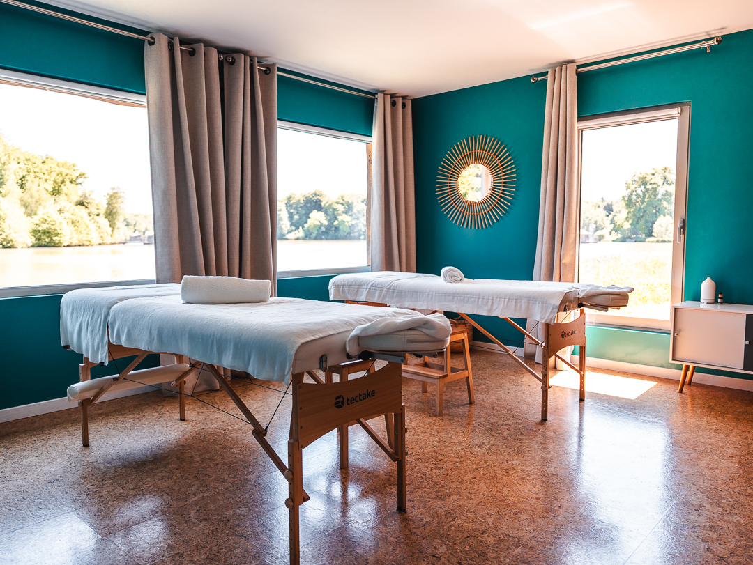 Seul ou à deux, il est possible de profiter d’un espace spa accueillant deux salles duo, dans le décor apaisant de l’étang Verchat.