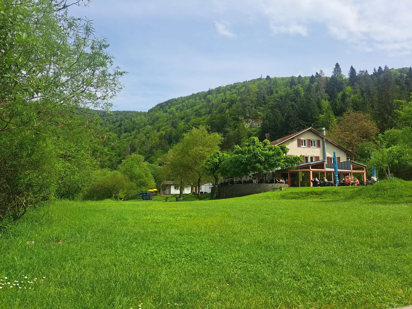 Posé sur les rives du Doubs, à seulement 6–8 km de Saint‑Ursanne, ce complexe propose emplacements camping, chalets/hôtel, restaurant avec grande terrasse, ouvert d’avril à octobre. Parfait pour les amoureux de rivière, de randos et de calme.