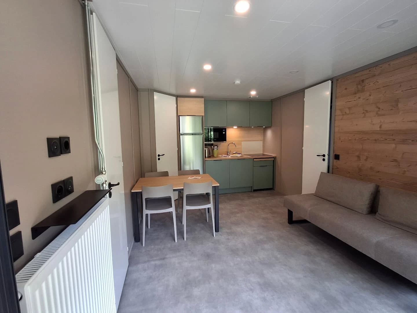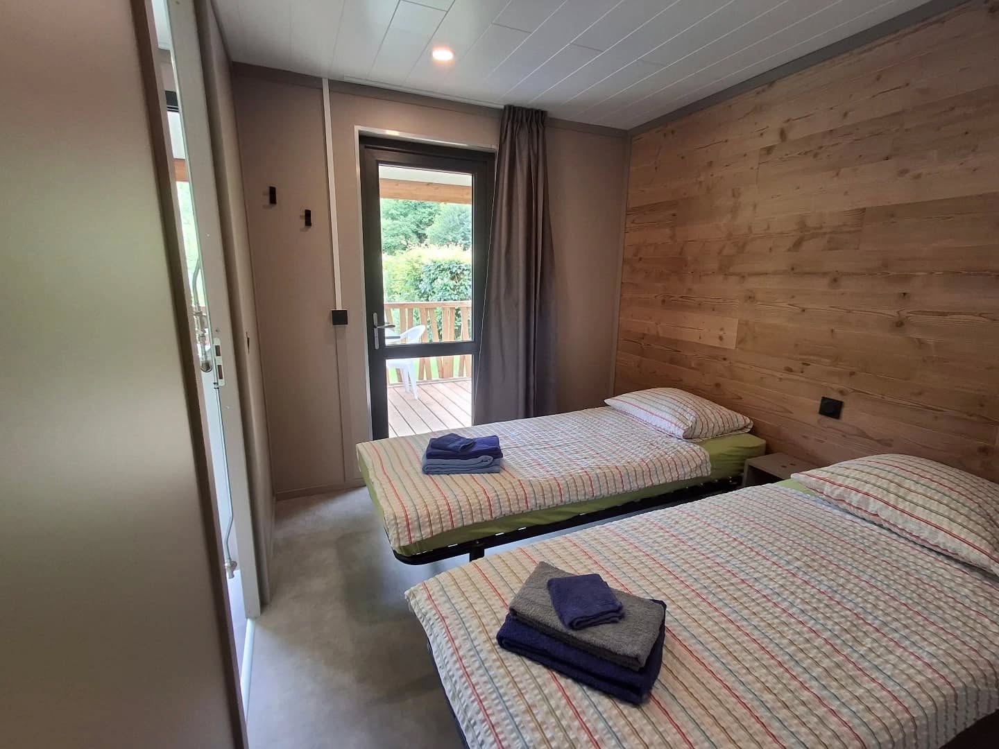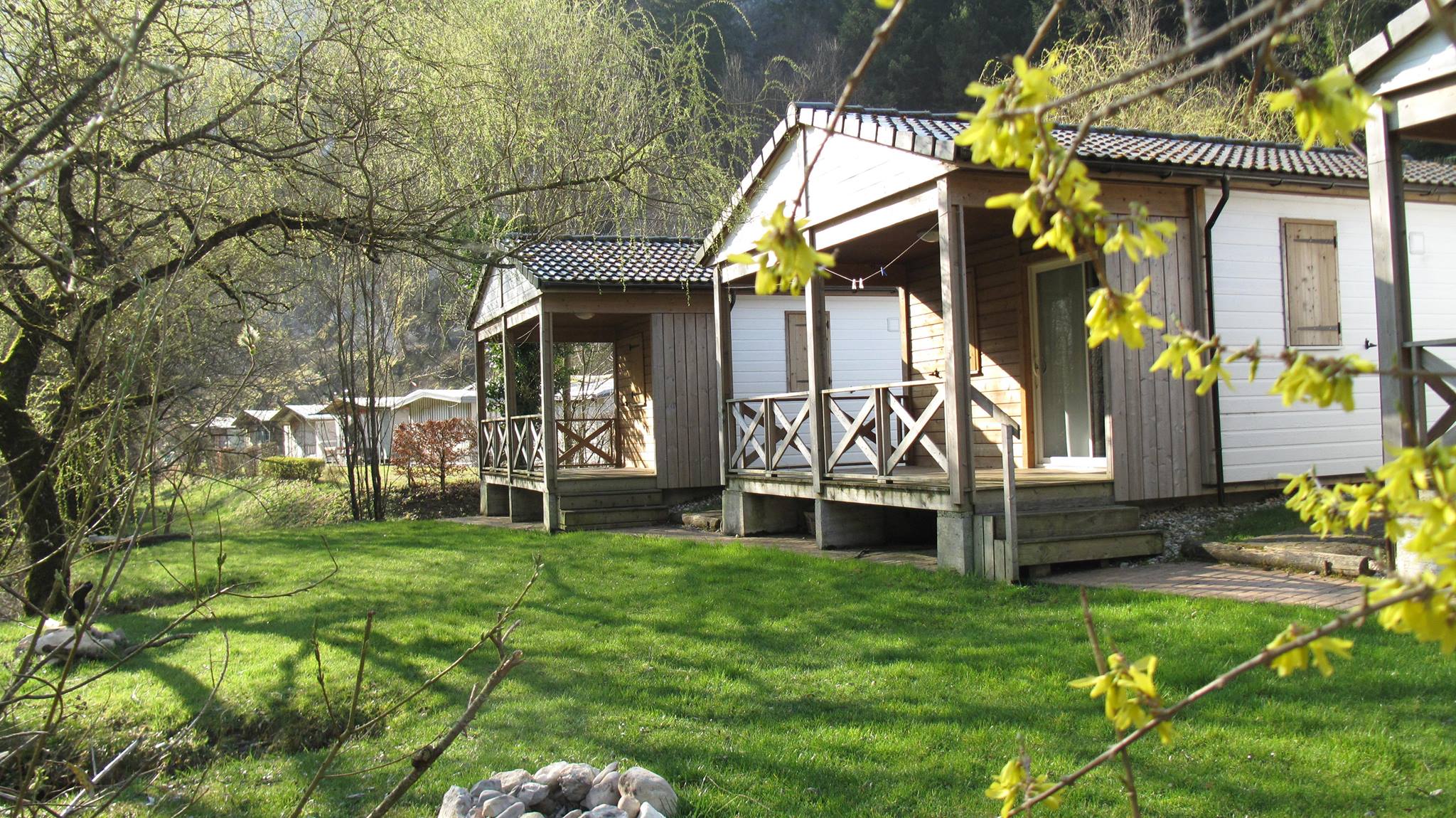 - Chalets confort/studio et hôtel : chambres doubles, familiales, dortoirs, studios et chalets (accessibles PMR disponibles), certains avec kitchenette et terrasse sur le Doubs.
