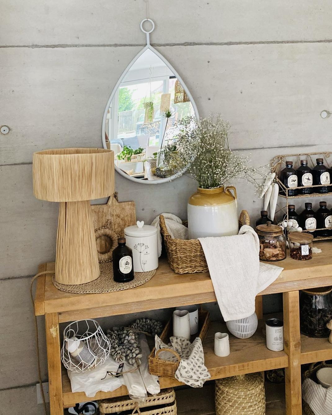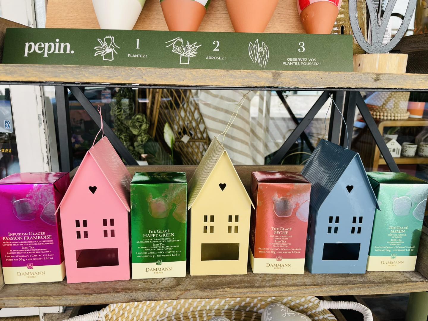 - L’espace Home & Déco à l’étage propose des objets raffinés : lampes, bougies WoodWick, vaisselle, coussins, foulards, bijoux fantaisie…