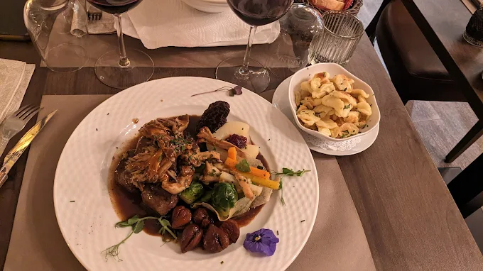 Poussez la porte d’un lieu chaleureux au charme rétro, avec brasserie, salle à manger intimiste, terrasse avec vue sur le château, et même des chambres pour prolonger l’expérience. Cuisine traditionnelle, menus du jour et sélection de vins raffinés dans une ambiance conviviale.